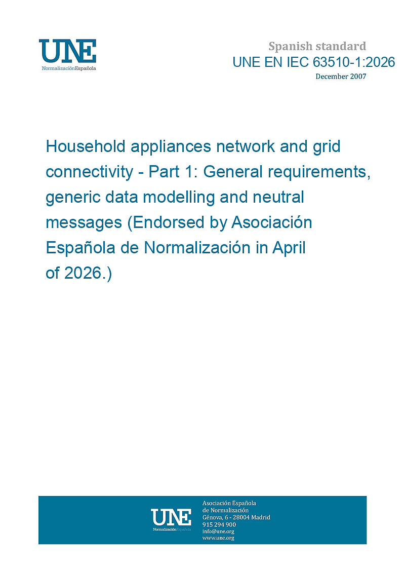 Red de aparatos electrodomésticos y conectividad de red. Parte 1: Requisitos generales, modelo de datos genéricos y mensajes neutrales. (Ratificada por la Asociación Española de Normalización en abril de 2026.)