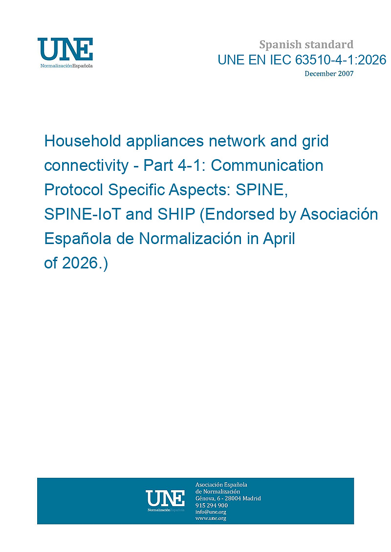 Household appliances network and grid connectivity - Part 4-1: Communication Protocol Specific Aspects: SPINE, SPINE-IoT and SHIP (Endorsed by Asociación Española de Normalización in April of 2026.)