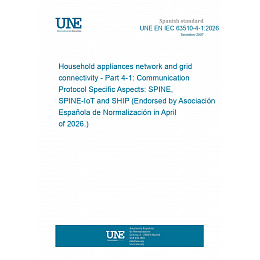 Red de aparatos electrodomésticos y conectividad de red. Parte 4-1: Aspectos específicos del protocolo de comunicación: SPINE, SPINE-IoT y SHIP (Ratificada por la Asociación Española de Normalización en abril de 2026.)