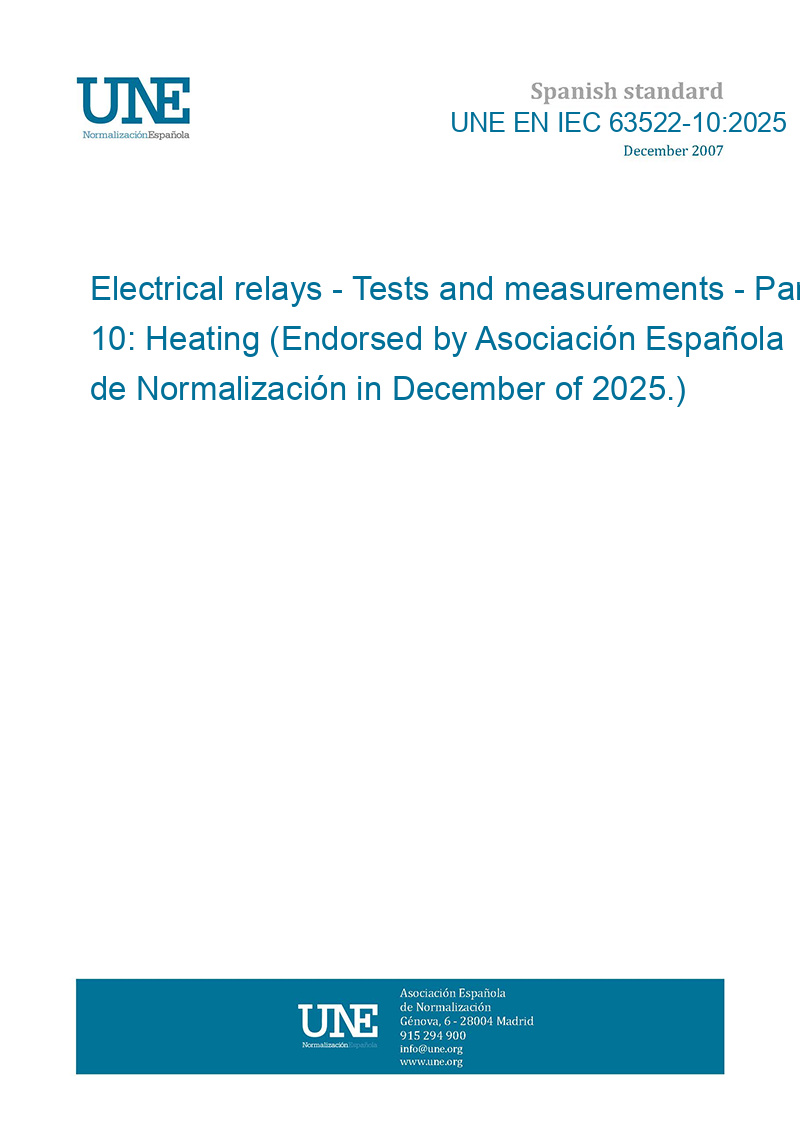 Relés eléctricos. Ensayos y medidas. Parte 10: Calentamiento (Ratificada por la Asociación Española de Normalización en diciembre de 2025.)