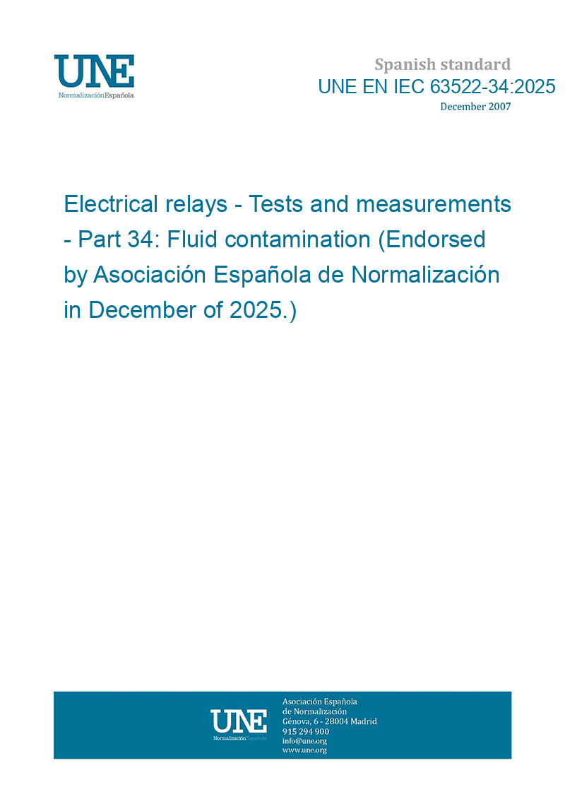 This standard UNE EN IEC 63522-34:2025 Electrical relays - Tests and measurements - Part 34: Fluid contamination (Endorsed by Asociación Española de Normalización in December of 2025.) is classified in these ICS categories: