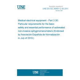 Medical electrical equipment - Part 2-30: Particular requirements for the basic safety and essential performance of automated non-invasive sphygmomanometers (Endorsed by Asociación Española de Normalización in July of 2019.)