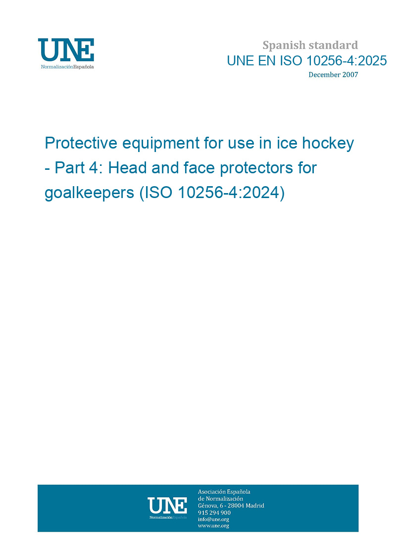 Equipo de protección para uso en hockey sobre hielo. Parte 4: Protectores de cabeza y cara para los porteros. (ISO 10256-4:2024).