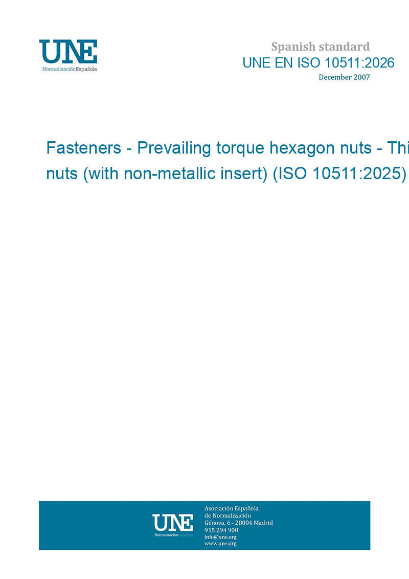 Fasteners - Prevailing torque hexagon nuts - Thin nuts (with non-metallic insert) (ISO 10511:2025)