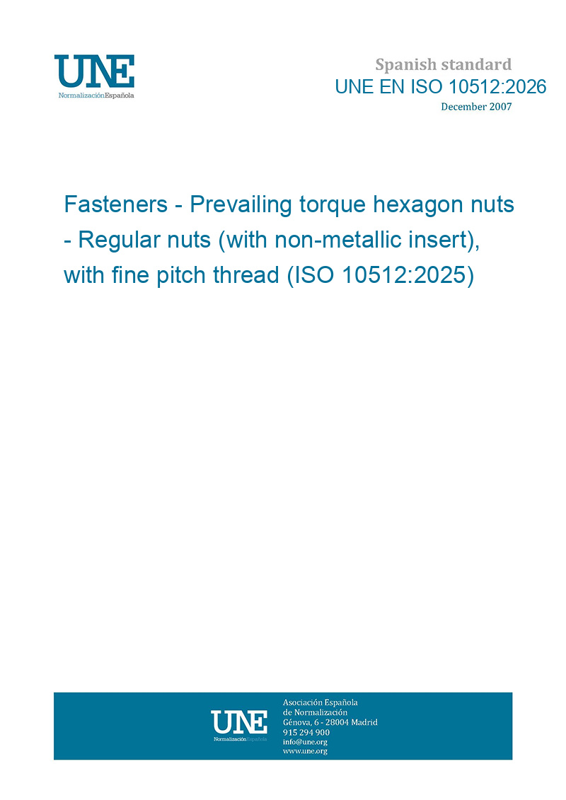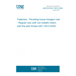 This standard UNE EN ISO 10512:2026 Fasteners - Prevailing torque hexagon nuts - Regular nuts (with non-metallic insert), with fine pitch thread (ISO 10512:2025) is classified in these ICS categories: