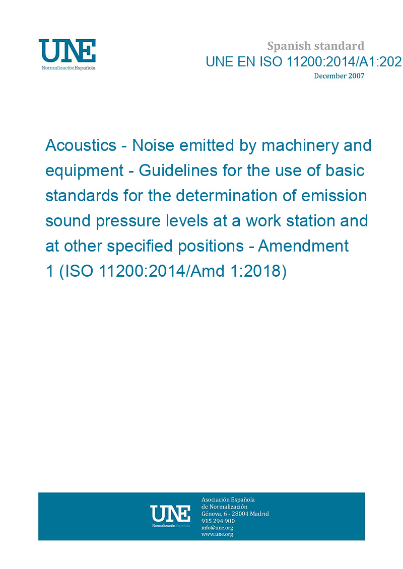 Acústica. Ruido emitido por máquinas y equipos. Directrices para la utilización de las normas básicas para la determinación de los niveles de presión acústica de emisión en el puesto de trabajo y en otras posiciones especificadas. Modificación 1. (ISO 11200:2014/Amd 1:2018).