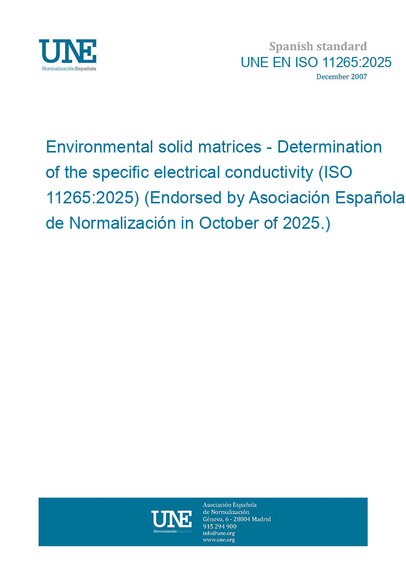 Environmental solid matrices - Determination of the specific electrical conductivity (ISO 11265:2025) (Endorsed by Asociación Española de Normalización in October of 2025.)