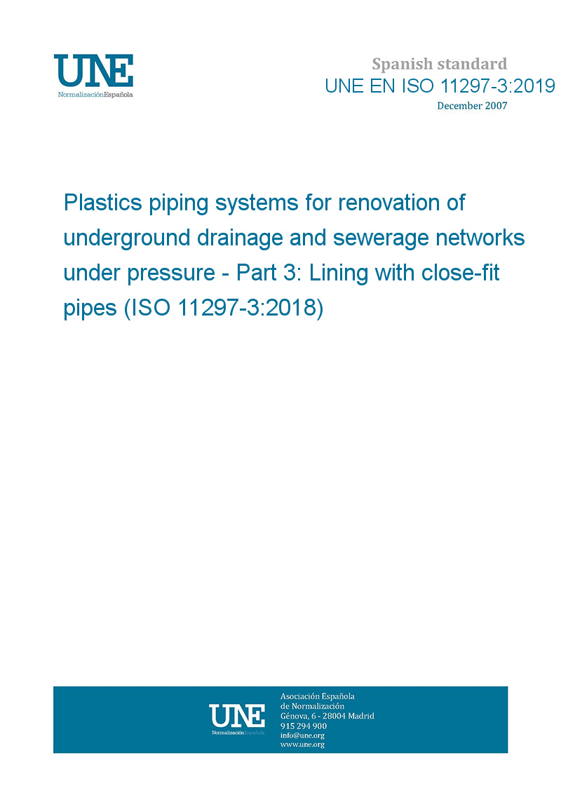 Sistemas de canalización en materiales plásticos para renovación de redes de saneamiento y alcantarillado con presión. Parte 3: Entubado ajustado. (ISO 11297-3:2018).