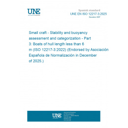 Pequeñas embarcaciones. Evaluación y clasificación de la estabilidad y la flotabilidad. Parte 3: Embarcaciones de eslora inferior a 6 m. (ISO 12217-3:2022). (Ratificada por la Asociación Española de Normalización en diciembre de 2025.)
