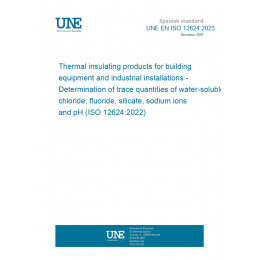 Productos aislantes térmicos para equipos en edificación e instalaciones industriales. Determinación de trazas de iones de cloruro, fluoruro, silicato y sodio solubles en agua, y determinación del pH. (ISO 12624:2022).