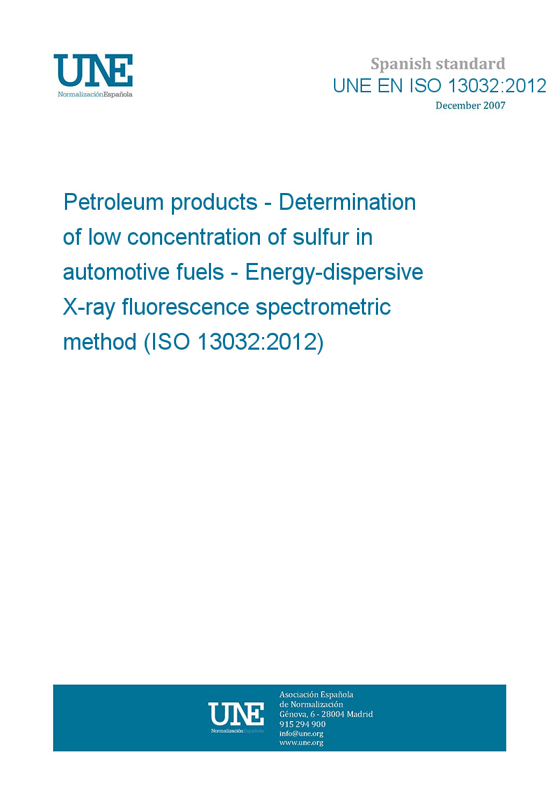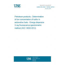 UNE EN ISO 13032:2012 Petroleum products - Determination of low concentration of sulfur in automotive fuels - Energy-dispersive X-ray fluorescence spectrometric method (ISO 13032:2012)