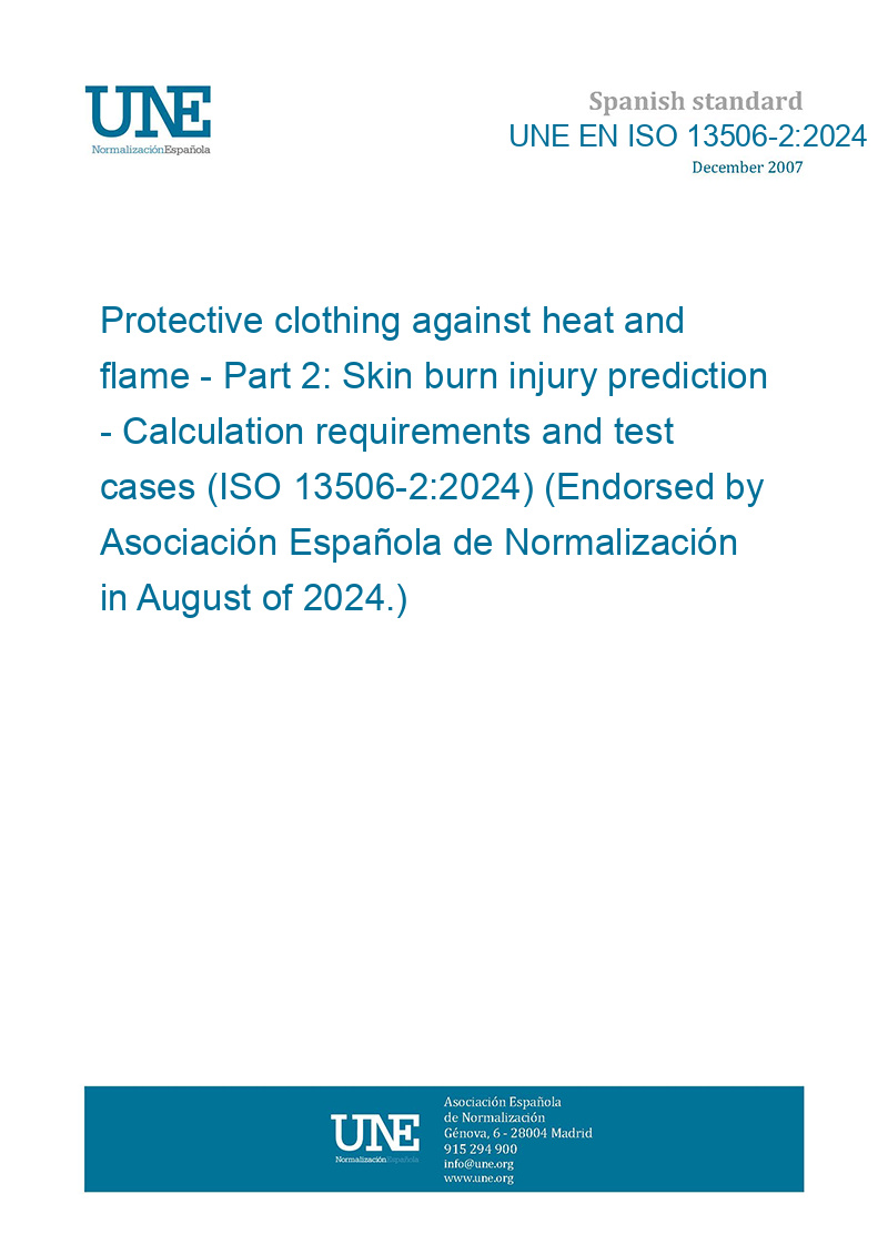 Ropa de protección contra el calor y la llama. Parte 2: Predicción de lesiones por quemaduras en la piel. Requisitos de cálculo y casos de ensayo (ISO 13506-2:2024) (Ratificada por la Asociación Española de Normalización en agosto de 2024.)