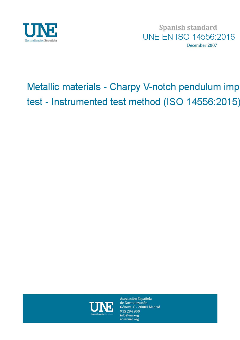 >UNE standards>UNE EN ISO 14556:2016 Metallic materials - Charpy V-notch pendulum impact test - Instrumented test method (ISO 14556:2015)