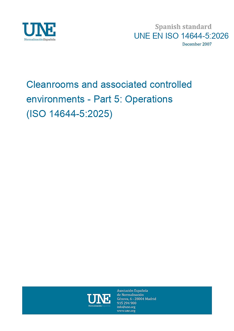 >UNE EN ISO 14644-5:2026 - Cleanrooms and associated controlled environments - Part 5: Operations (ISO 14644-5:2025)