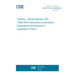 Odontología. Pinzas dentales. (ISO 15098:2024) (Ratificada por la Asociación Española de Normalización en septiembre de 2024.)