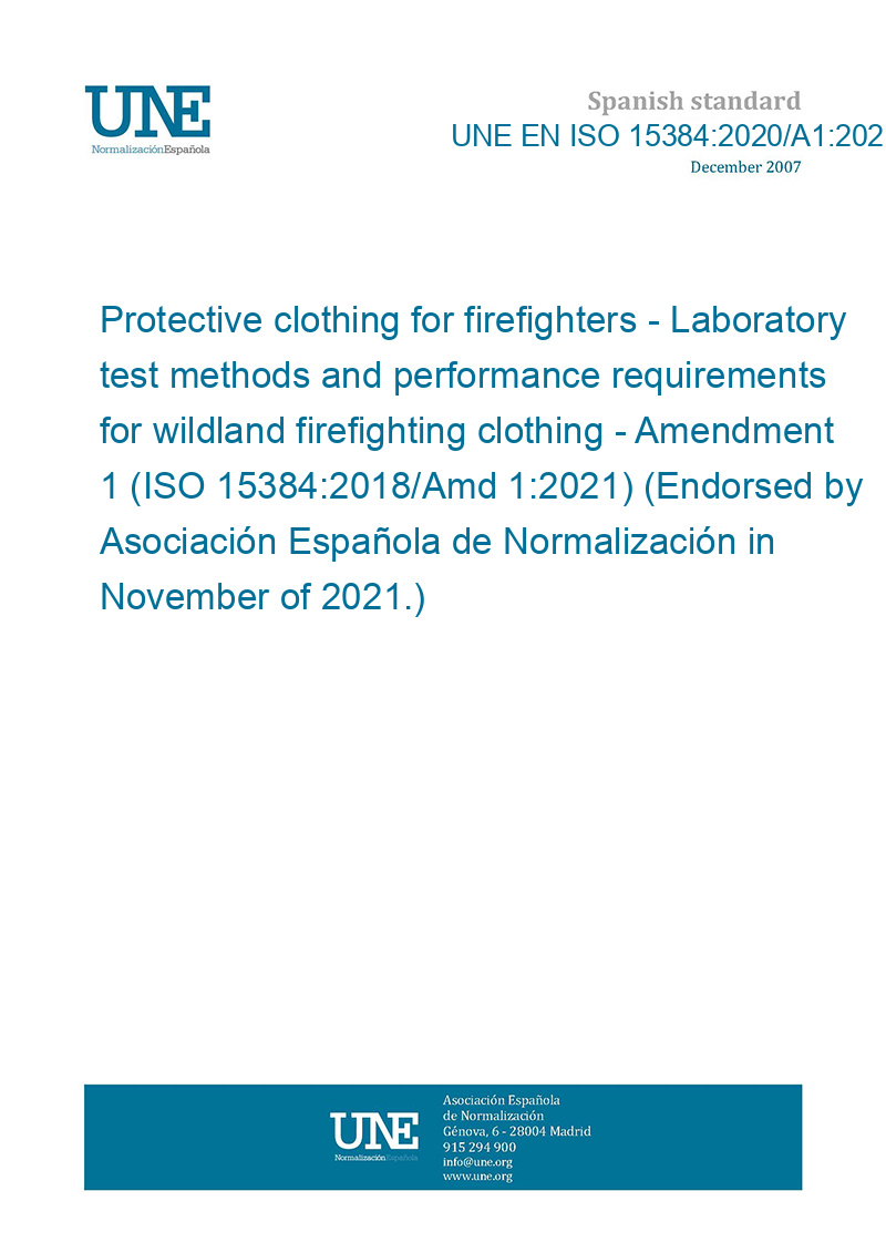Protective clothing for firefighters - Laboratory test methods and performance requirements for wildland firefighting clothing - Amendment 1 (ISO 15384:2018/Amd 1:2021) (Endorsed by Asociación Española de Normalización in November of 2021.)