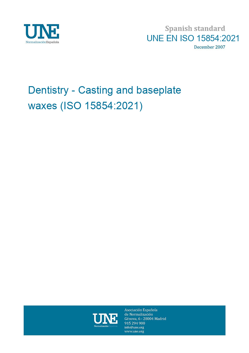 UNE EN ISO 15854:2021 Dentistry - Casting and baseplate waxes (ISO 15854:2021)Not available online - contact us!