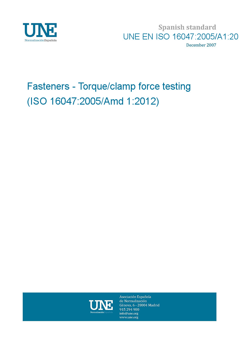 Fasteners - Torque/clamp force testing (ISO 16047:2005/Amd 1:2012)