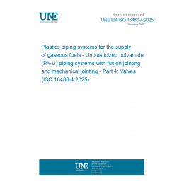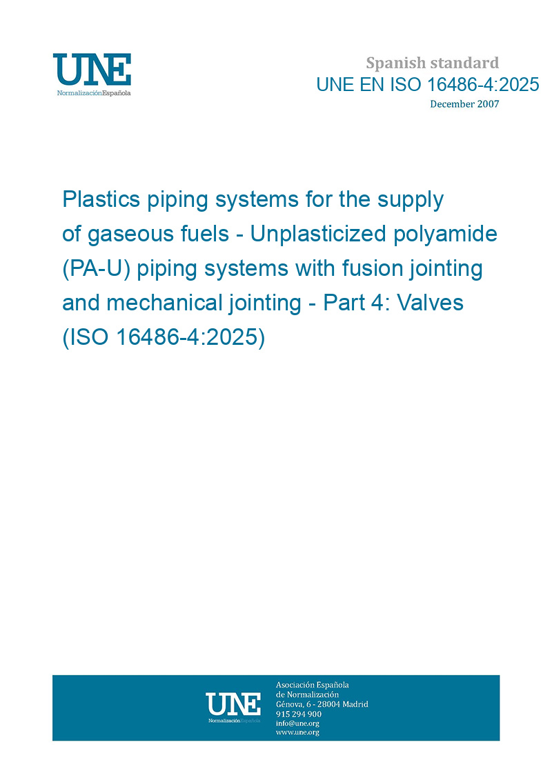 Sistemas de canalización en materiales plásticos para el suministro de combustibles gaseosos. Sistemas de canalización de poliamida no plastificada (PA-U) con unión por fusión y unión mecánica. Parte 4: Válvulas. (ISO 16486-4:2025)