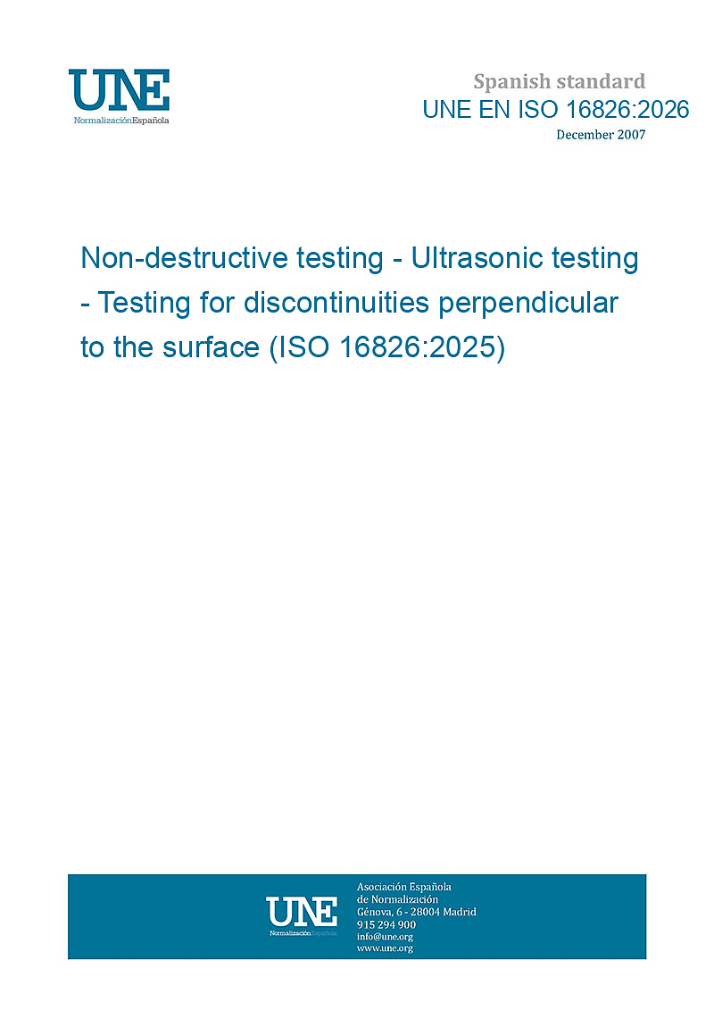 Ensayos no destructivos. Ensayos por ultrasonidos. Examen para discontinuidades perpendiculares a la superficie. (ISO 16826:2025).