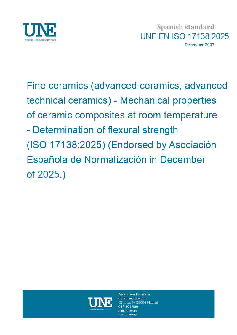Fine ceramics (advanced ceramics, advanced technical ceramics) - Mechanical properties of ceramic composites at room temperature - Determination of flexural strength (ISO 17138:2025) (Endorsed by Asociación Española de Normalización in December of 2025.)