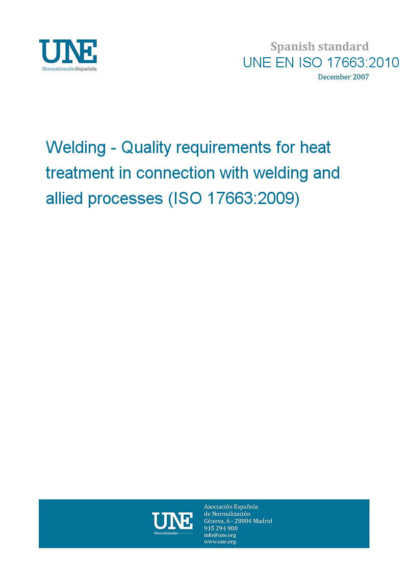 >UNE standards>UNE EN ISO 17663:2010 Welding - Quality requirements for heat treatment in connection with welding and allied processes (ISO 17663:2009)