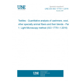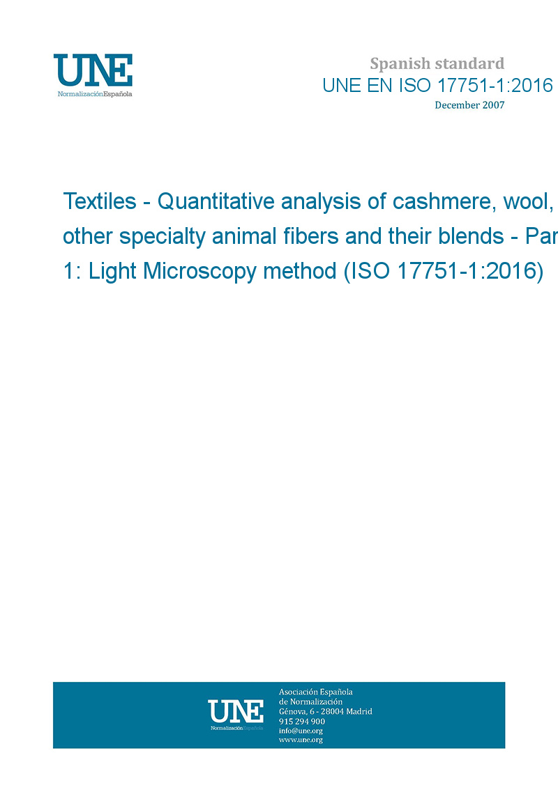 Textiles. Análisis cuantitativo de la cachemira, de la lana, otras fibras animales especiales y sus mezclas. Parte 1: Método del microscopio óptico. (ISO 17751-1:2016).
