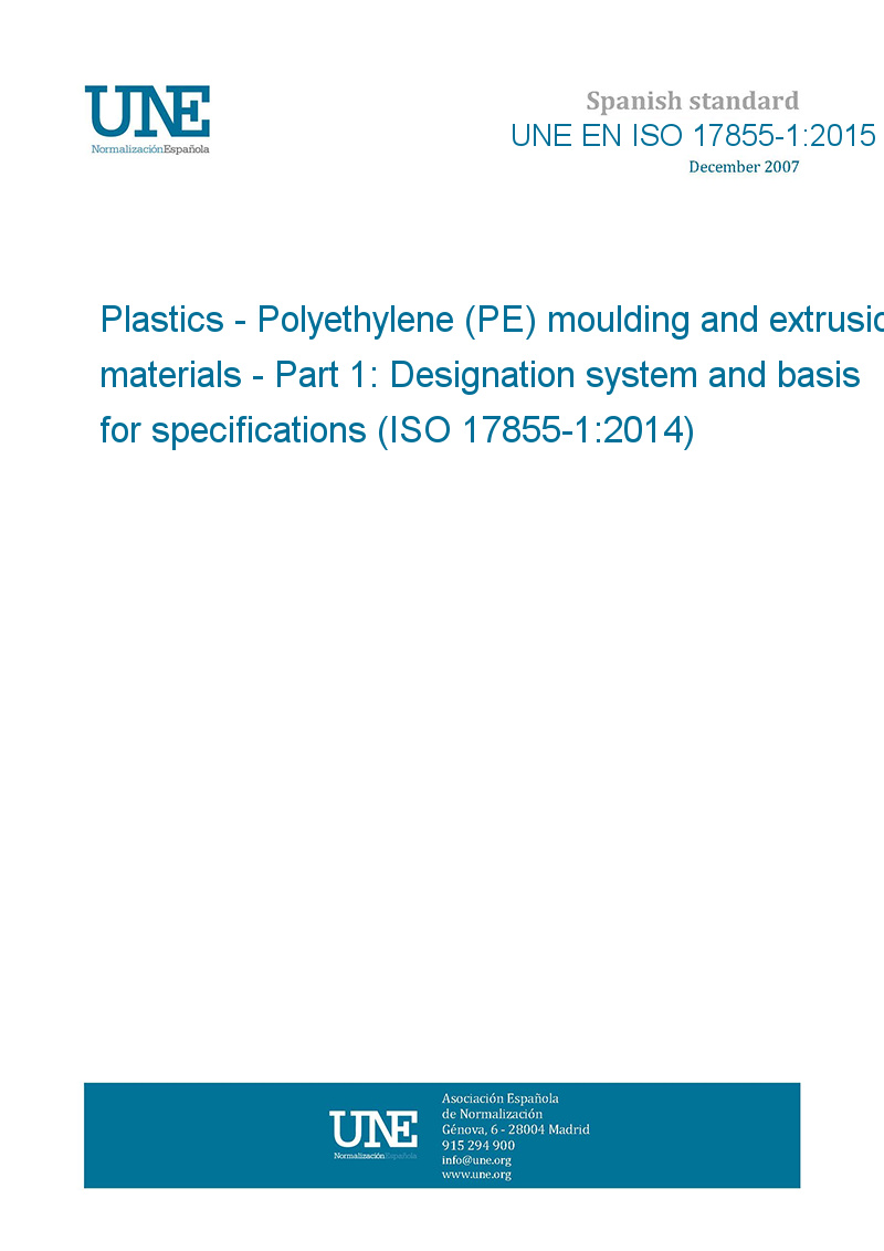 Plásticos. Materiales de polietileno (PE) para moldeo y extrusión. Parte 1: Sistema de designación y bases para las especificaciones. (ISO 17855-1:2014).