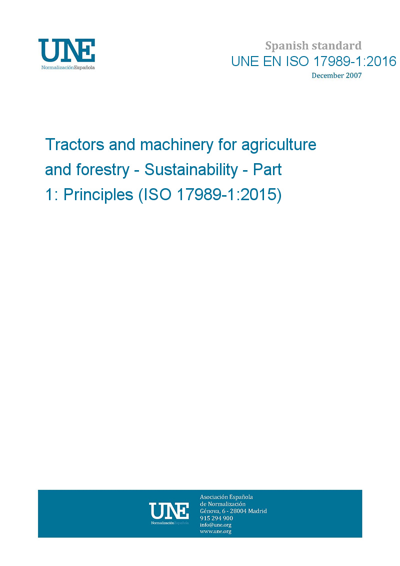 Tractores y maquinaria agrícola y forestal. Sostenibilidad. Parte 1. Principios. (ISO 17989-1:2015).