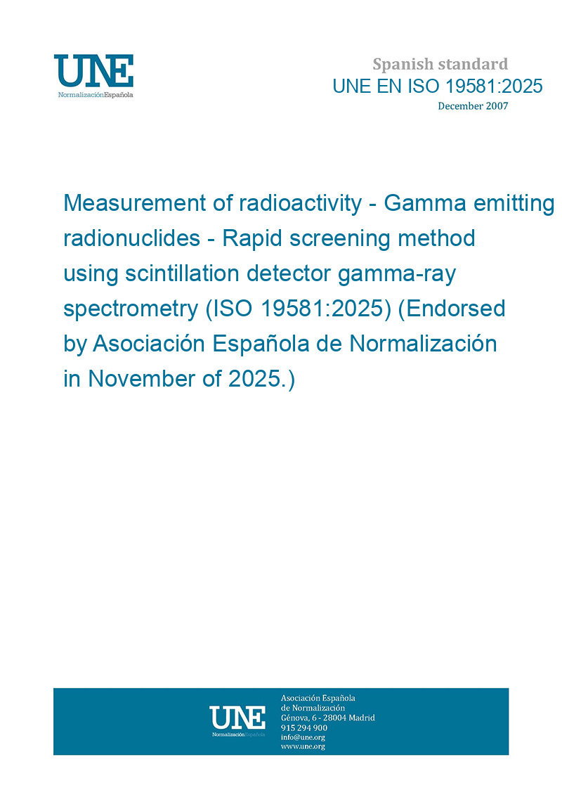 Medición de la radiactividad. Radionucleidos emisores de rayos gamma. Método de detección rápida mediante espectrometría de rayos gamma con detector de centelleo. (ISO 19581:2025) (Ratificada por la Asociación Española de Normalización en noviembre de 2025.)