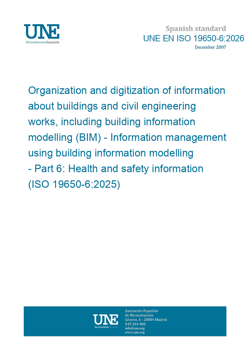 Organización y digitalización de la información en obras de edificación e ingeniería civil que utilizan BIM (Building Information Modelling). Gestión de la información al utilizar BIM. Parte 6: Información sobre seguridad y salud. (ISO 19650-6:2025).