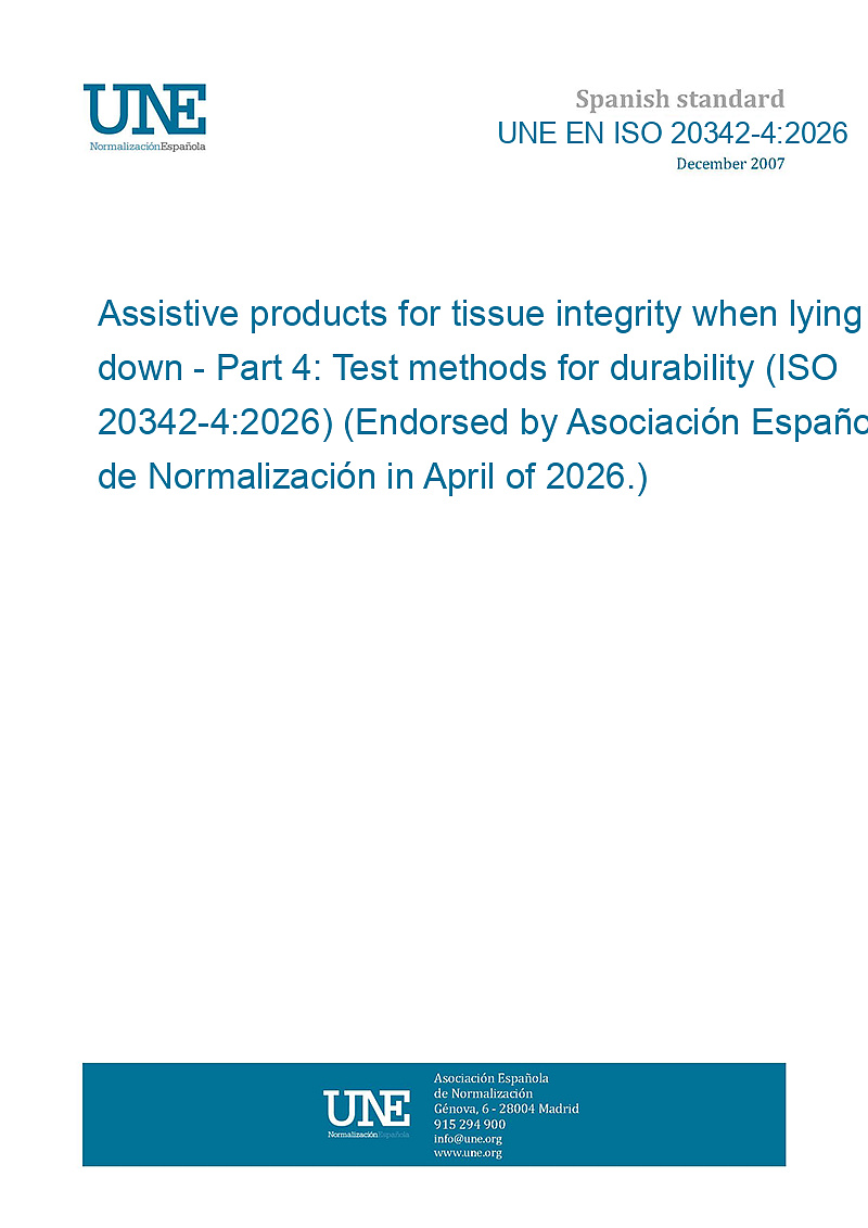 Assistive products for tissue integrity when lying down - Part 4: Test methods for durability (ISO 20342-4:2026) (Endorsed by Asociación Española de Normalización in April of 2026.)