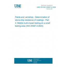 Pinturas y barnices. Determinación de la resistencia de los recubrimientos al impacto de piedras. Parte 4: Ensayo multiimpacto móvil en una zona pequeña de ensayo. (ISO 20567-4:2023).