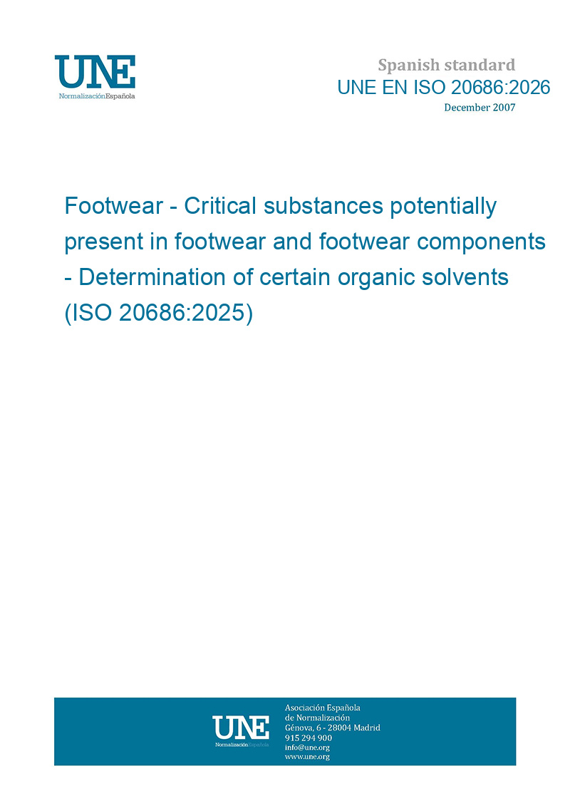 Calzado. Sustancias críticas potencialmente presentes en el calzado y sus componentes. Determinación de ciertos disolventes orgánicos. (ISO 20686:2025).