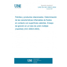 Petróleo y productos relacionados. Determinación de las características inflamables de fluidos en contacto con superficies calientes. Ensayo de ignición en un tubo de unión múltiple (manifold) (ISO 20823:2003).