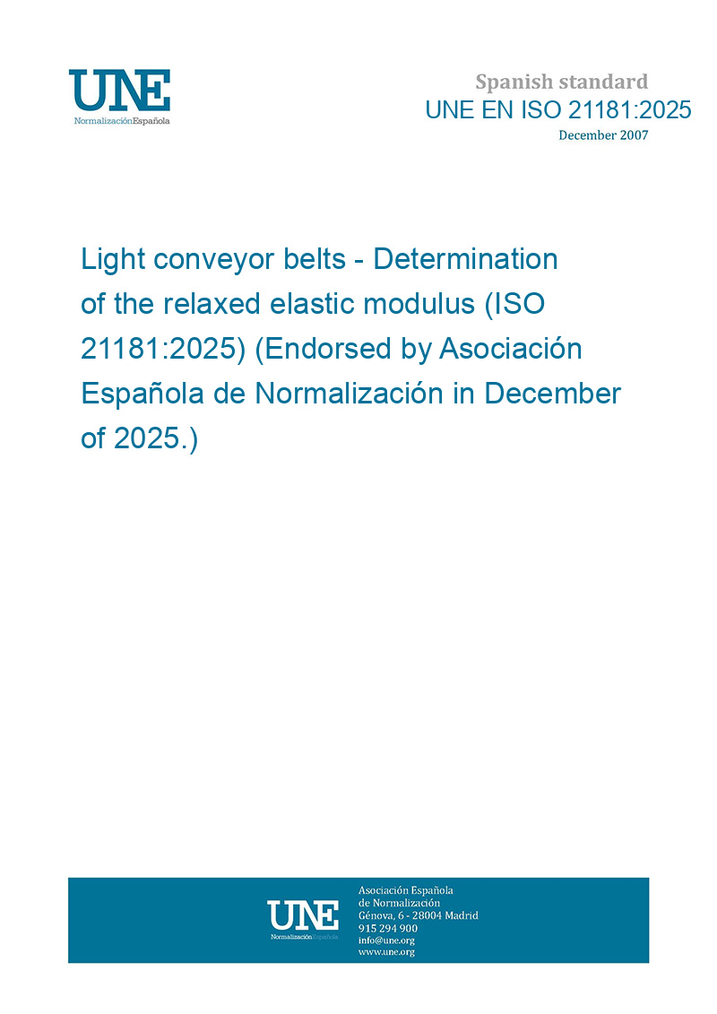 Cintas transportadoras ligeras. Determinación del módulo de elasticidad relajado (ISO 21181:2025) (Ratificada por la Asociación Española de Normalización en diciembre de 2025.)