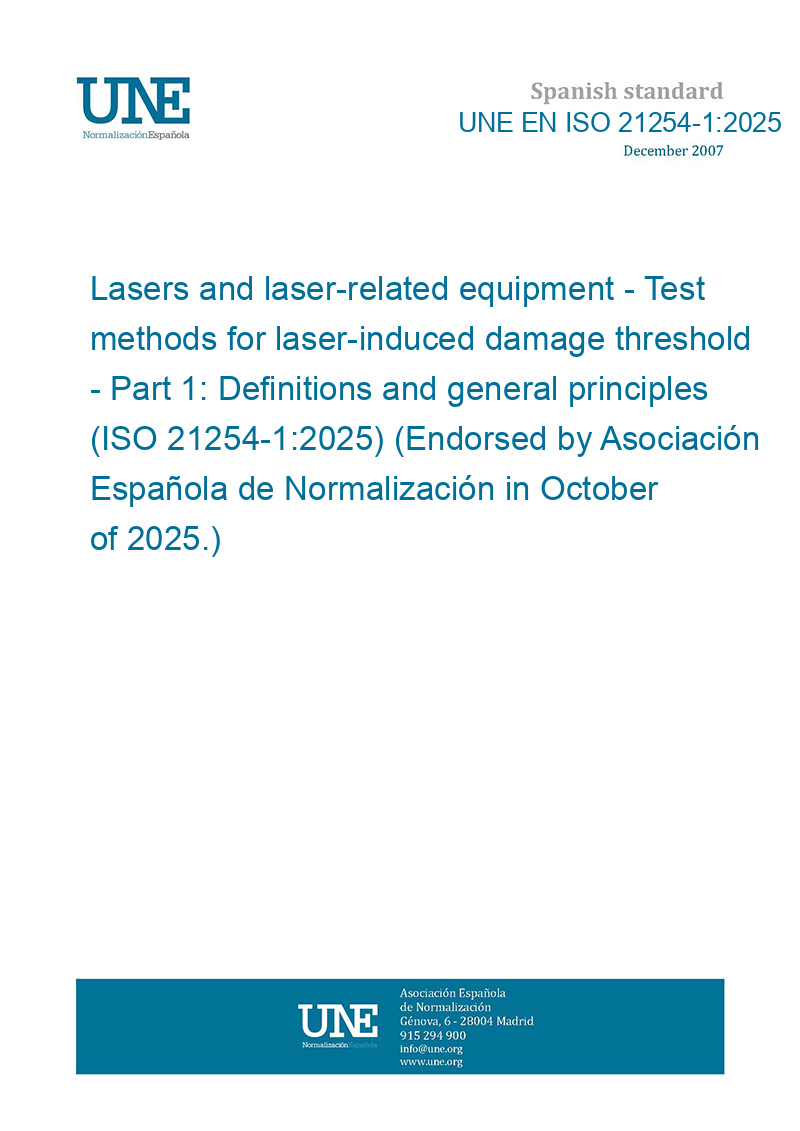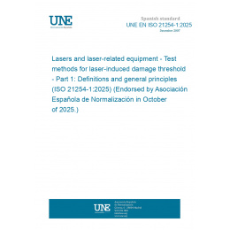 Láseres y equipos asociados a los láseres. Métodos de ensayo del umbral de daño producido por radiación láser. Parte 1: Definiciones y principios generales (ISO 21254-1:2025) (Ratificada por la Asociación Española de Normalización en octubre de 2025.)