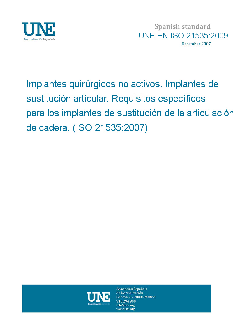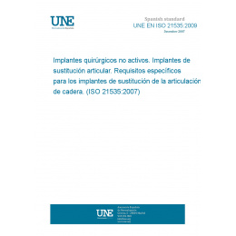 Implantes quirúrgicos no activos. Implantes de sustitución articular. Requisitos específicos para los implantes de sustitución de la articulación de cadera. (ISO 21535:2007)
