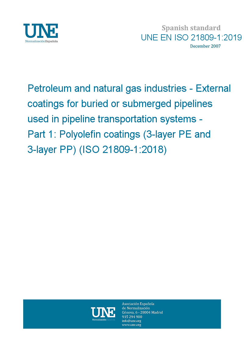 | Standard number: | UNE EN ISO 21809-1:2019 |