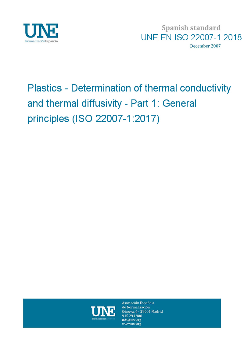 >UNE standards>UNE EN ISO 22007-1:2018 Plastics - Determination of thermal conductivity and thermal diffusivity - Part 1: General principles (ISO 22007-1:2017)