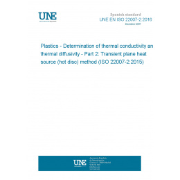 Plásticos. Determinación de la conductividad térmica y la difusividad térmica. Parte 2: Método de la fuente de calor plana transitoria (disco caliente). (ISO 22007-2:2015).