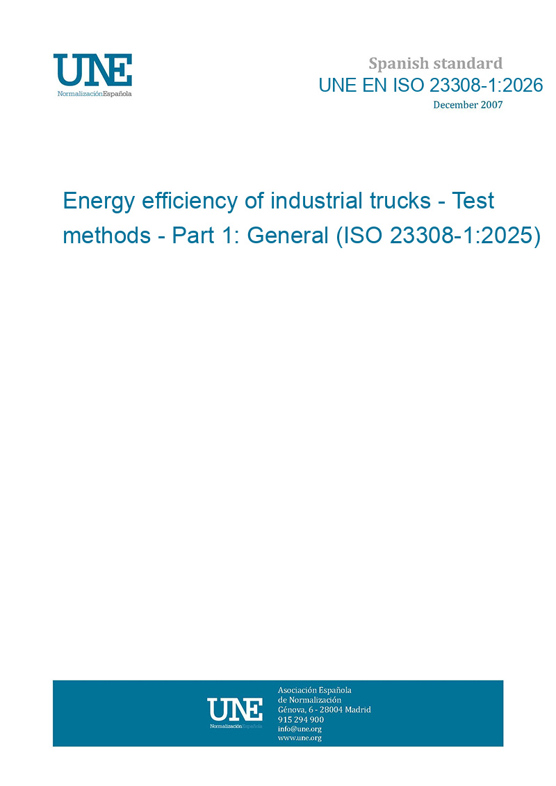 This standard UNE EN ISO 23308-1:2026 Energy efficiency of industrial trucks - Test methods - Part 1: General (ISO 23308-1:2025) is classified in these ICS categories: