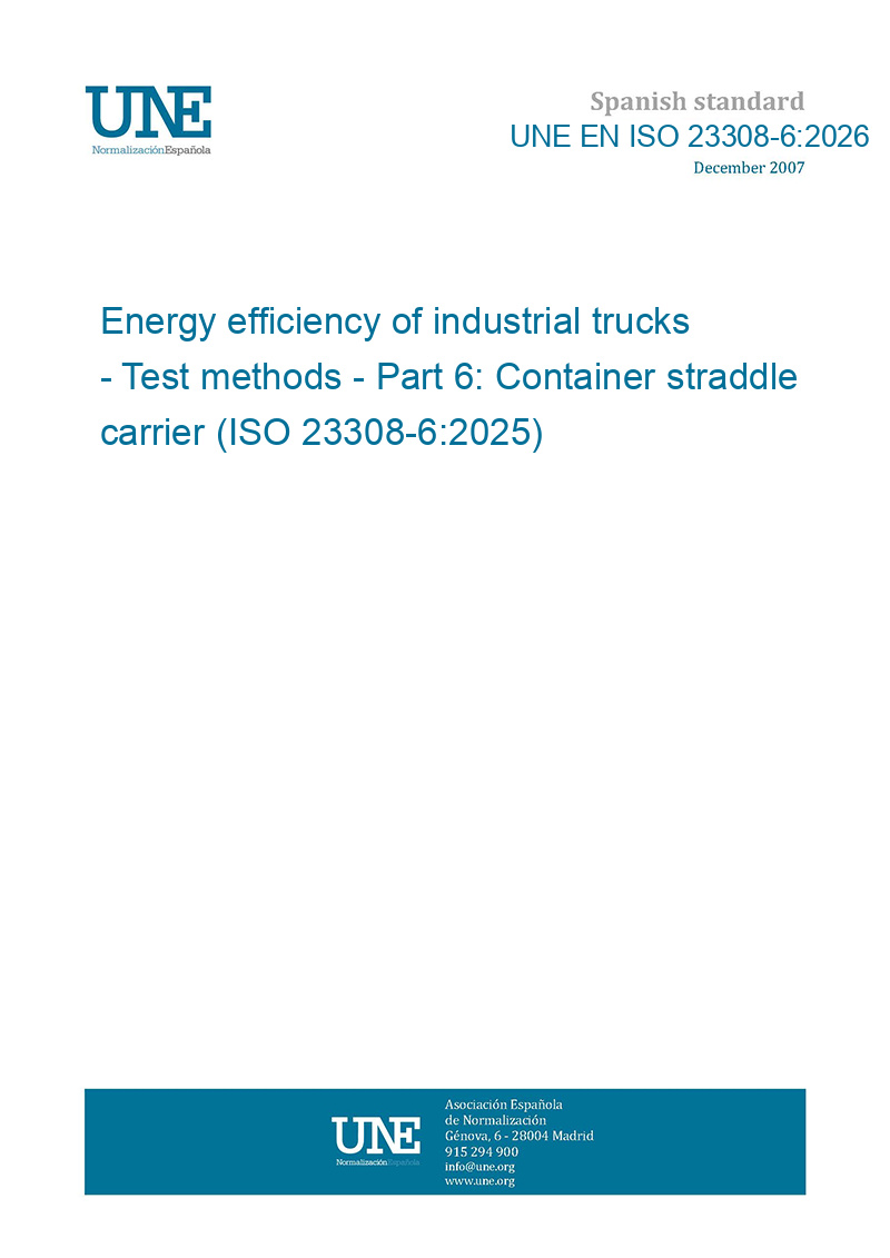 Eficiencia energética de las carretillas de manutención. Métodos de ensayo. Parte 6: Carretillas pórtico portacontenedores. (ISO 23308-6:2025).