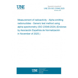 Medición de radiactividad. Radionucleidos emisores de radiactividad alfa. Método de ensayo genérico mediante espectrometría alfa (ISO 23548:2024) (Ratificada por la Asociación Española de Normalización en noviembre de 2025.)