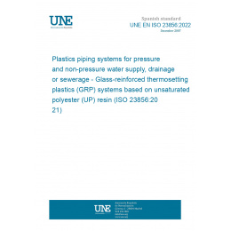 Sistemas de canalización en materiales plásticos para el suministro de agua, evacuación y saneamiento con y sin presión. Sistemas en materiales plásticos termoestables reforzados con fibra de vidrio (PRFV) a base de resina de poliéster insaturado (UP). (ISO 23856:2021).