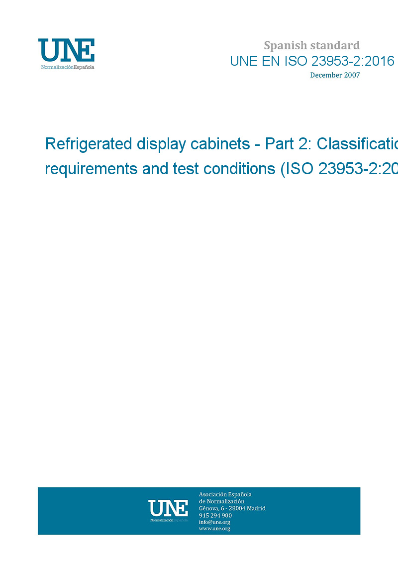 Muebles frigoríficos comerciales. Parte 2: Clasificación, requisitos y condiciones de ensayo. (ISO 23953-2:2015).