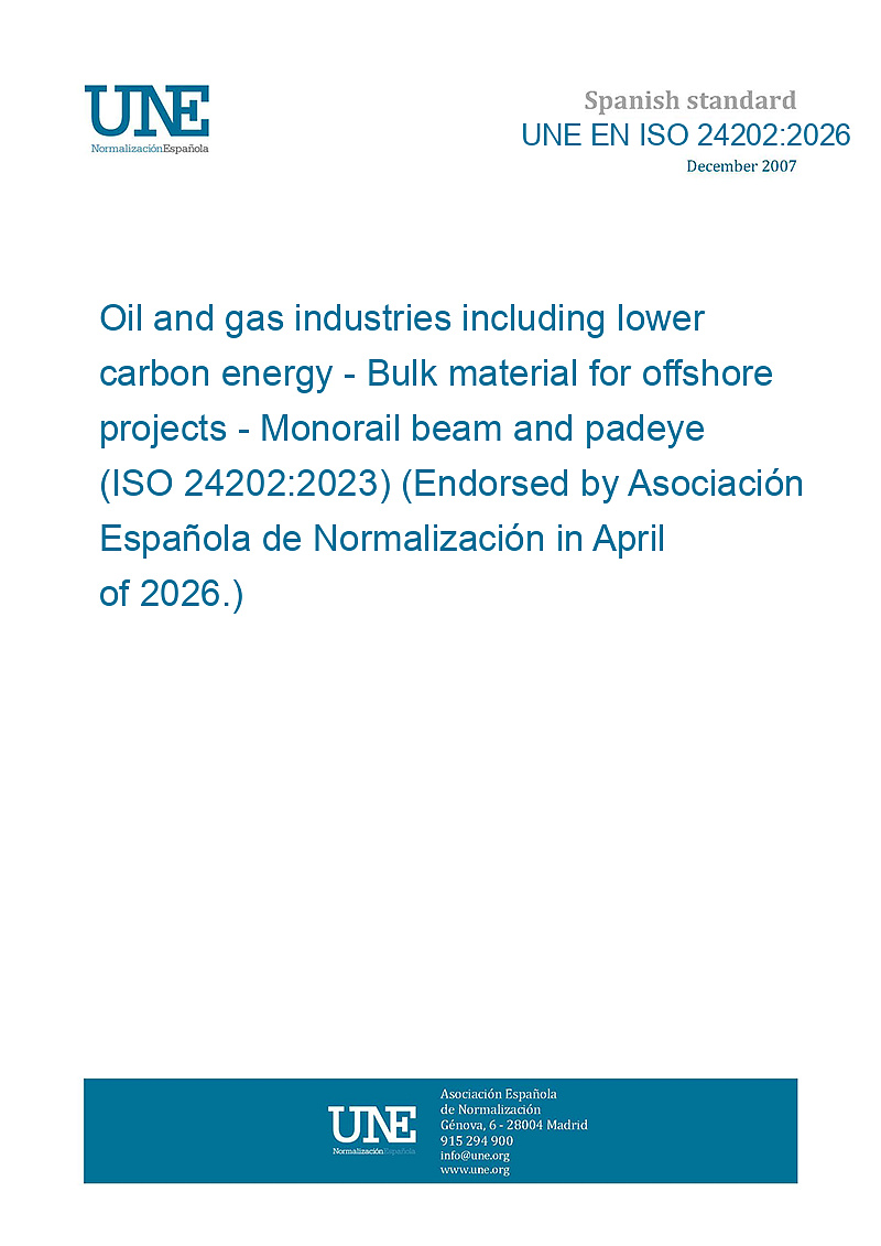 Industrias del petróleo y el gas, incluida la energía con bajas emisiones de carbono. Material a granel para proyectos marítimos. Viga monorraíl y argolla (ISO 24202:2023) (Ratificada por la Asociación Española de Normalización en abril de 2026.)