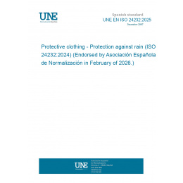 Ropa de protección. Protección contra la lluvia. (ISO 24232:2024) (Ratificada por la Asociación Española de Normalización en febrero de 2026.)