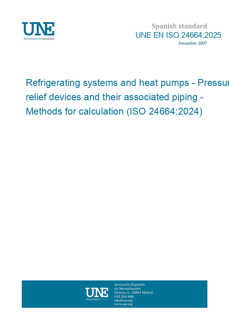 Sistemas de refrigeración y bombas de calor. Dispositivos de alivio de presión y sus tuberías de conexión. Métodos de cálculo. (ISO 24664:2024).