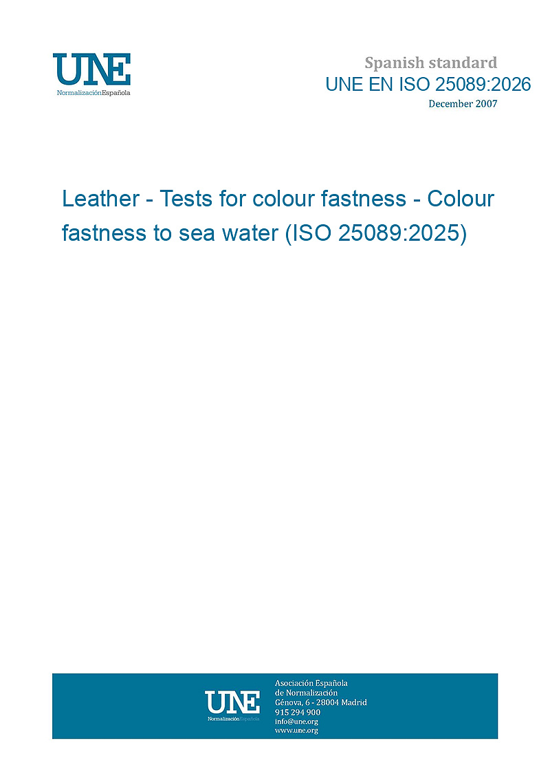 Cuero. Ensayos de solidez del color. Solidez del color al agua de mar. (ISO 25089:2025).